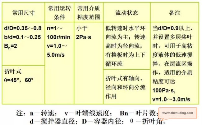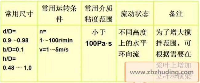 桨式搅拌器的转速一般为20~100r/min ,其常用参数见下表: